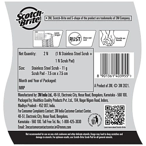 Scotch Brite Scrubber Combo Of Stainless Steel & Scrub Pad, 1 pc (Set of 2)