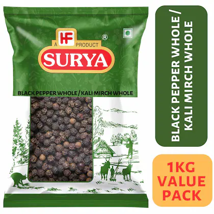 Surya 1kg Black Pepper Whole Value Pack | Kali Mirchi Whole | 100% Natural | Best Whole Spices